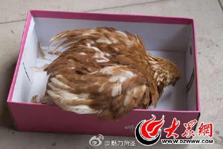 隨后,許多鄰居朋友趕來參觀這只與眾不同的雞,紛紛拍照,有的還把它拿起來看。朱女士說,到下午5點,已經有四五十人來看這只雞了。今天上午它還很有精神地到處跑,但現在已經不動了,只在盒子里趴著。“大概是被嚇壞了,看上去已經奄奄一息了。”