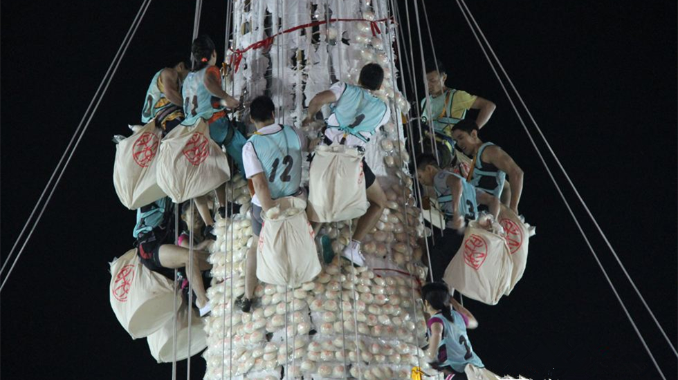搶包山是香港地區的民間歲時風俗,流行于香港長洲,距今已有兩百多年歷史。按照傳統說法,爬上包山,取得越多包子,福氣就越高。