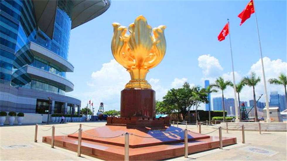 1997年7月1日香港特別行政區成立,中央政府把金紫荊銅像贈送香港。金紫荊銅像被安放在會展中心旁,這個廣場也被命名為金紫荊廣場。這座高6米的銅像正式名稱為“永遠盛開的紫荊花”,寓意香港永遠繁榮昌盛。現在這里已經成為香港熱門的旅游景點。