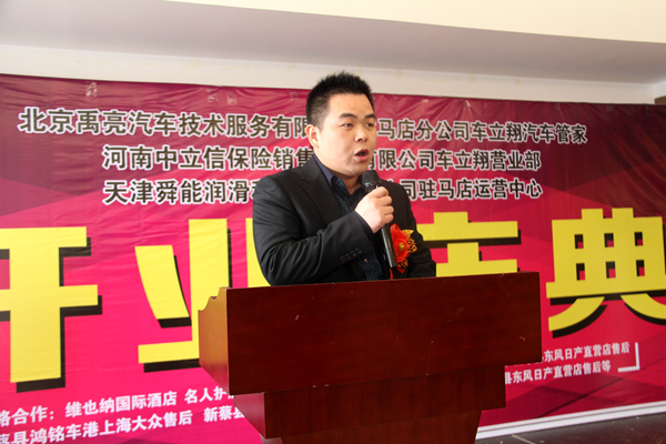 北京禹亮汽車技術服務有限公司胡總、河南中立信保險銷售服務有限公司劉董事長、天津舜能潤滑油科技服務股份有限公司萬總、車立翔汽車管家駐馬店分公司王總、維也納國際酒店總經理李猛參加了開業慶典儀式并現場致辭、發言。鳳凰生活網、豫青網、大象融媒河南手機臺、駐馬店網、駐馬店廣視網、駐馬店日報、天中晚報等媒體進行了全程跟蹤報道。
