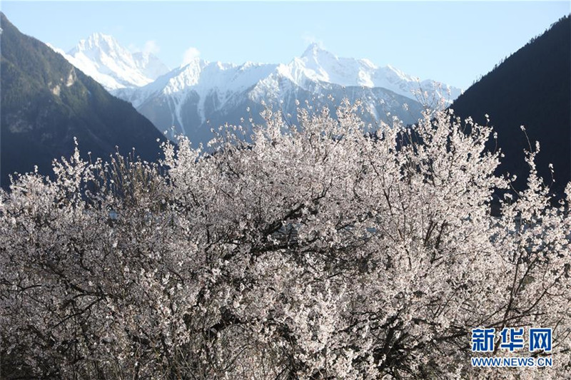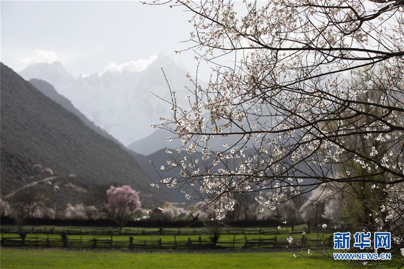 近日,西藏林芝市波密縣桃花溝里的桃花相繼綻放,與雪山相映,令人流連忘返。新華社記者 金立旺 攝