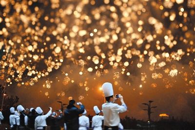 該負責人說,“鳥巢”、玲瓏塔、了望塔的焰火燃放實施難度大,為使焰火造型完美展現出每一朵花卉開放的過程,保證燃放效果,不僅借助了GPS定位儀、高度儀、角度儀、測距儀等高科技設備,還采用了高精度的激光瞄準儀等輔助工具,利用這些設備、技術,精確定點,確保每一個煙花產品的安裝位置和安裝角度的精確性,“不允許有一毫米的偏差”。