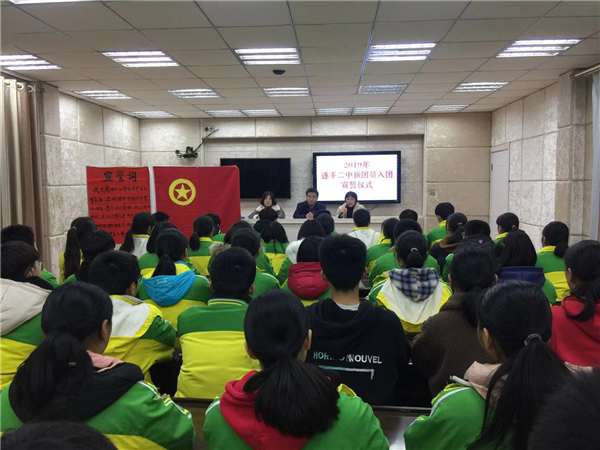 駐馬店廣電融媒體消息:12月4日,遂平縣第二初級中學舉行2019年新團員宣誓儀式。宣誓儀式由學校團委書記李海婷主持。校工會主席趙俊峰、團委委員王璐以及各班團支書和新團員參加了本次活動。
