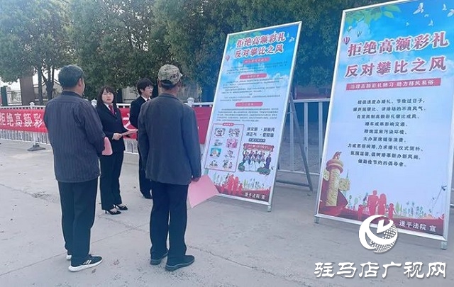 活動(dòng)現(xiàn)場(chǎng),干警們懸掛條幅、擺放版面、發(fā)放《民法典》《最高人民法院關(guān)于審理涉彩禮糾紛案件適用法律若干問(wèn)題的規(guī)定》彩頁(yè)等宣傳方式,對(duì)群眾進(jìn)行講解、宣傳。同時(shí),干警們還結(jié)合實(shí)際工作,將法律法規(guī)與傳統(tǒng)習(xí)俗、村規(guī)民約相結(jié)合,就婦女在婚姻家事、就業(yè)、移風(fēng)易俗等方面遇到的法律問(wèn)題進(jìn)行解答。并且詳細(xì)介紹了如何通過(guò)法律途徑維護(hù)自身合法權(quán)益,還結(jié)合本院審理的涉彩禮糾紛案例詳細(xì)講述了高價(jià)彩禮、包辦婚姻等陋習(xí)陋俗對(duì)雙方家庭所帶來(lái)的危害,引導(dǎo)在場(chǎng)群眾樹(shù)立彩禮適度、婚姻自由的良好風(fēng)尚。